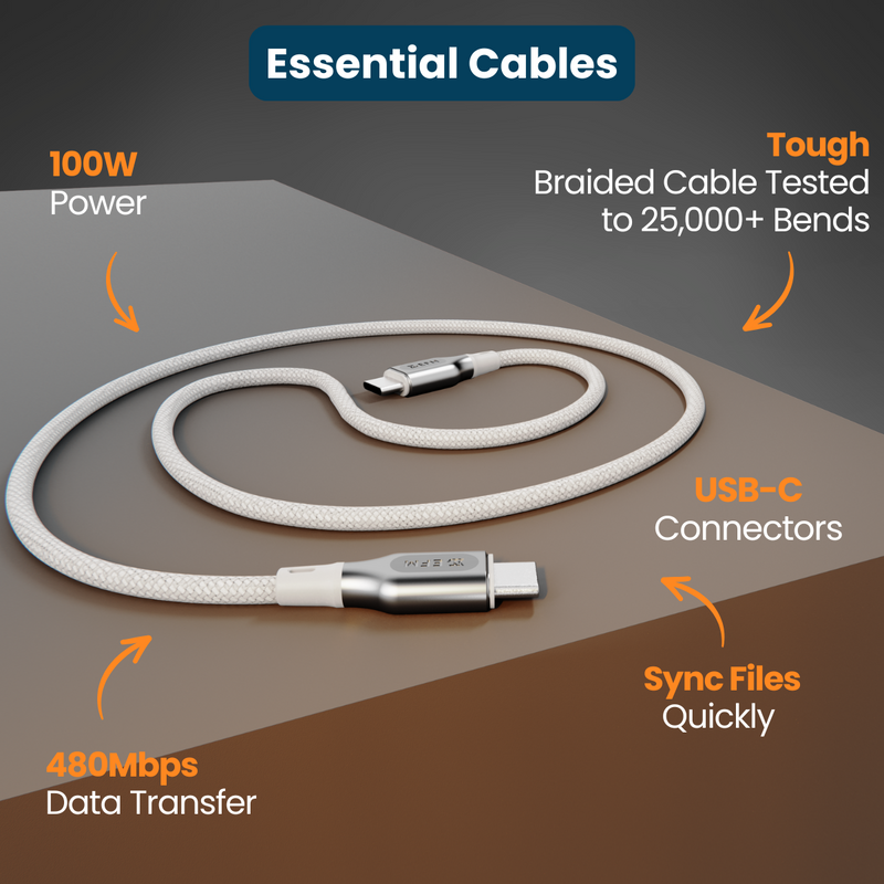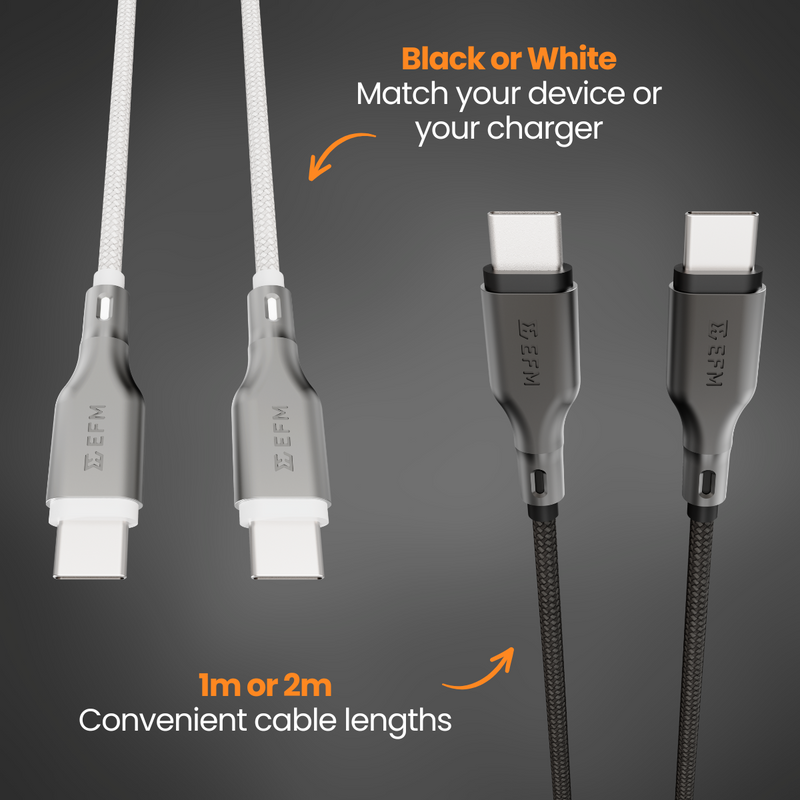 The EFM USB-C to USB-C Essential Power Cable is your go-to for reliable power. With a robust 100W output, it’s ideal for quickly powering laptops, tablets, and other power-hungry devices.